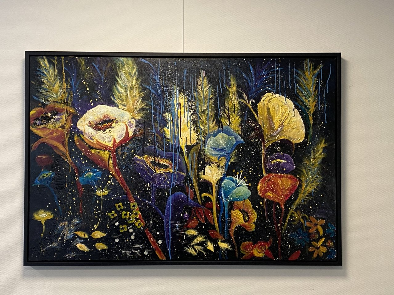 Een globale impressie van het schilderij "Flowers in the dark" 155x105cm.