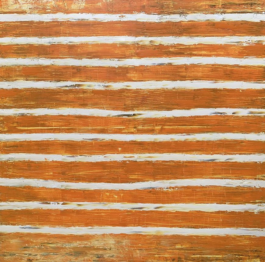 Een globale impressie van het schilderij "Maupiti-pacific" 124x124cm.