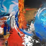 Een globale impressie van het schilderij "Faces 1" 17,5x26,8cm.