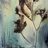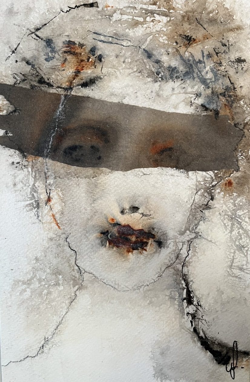 Uit een serie. Mixed media op aquarelpapier op houten paneeltje 0,9 cm dik