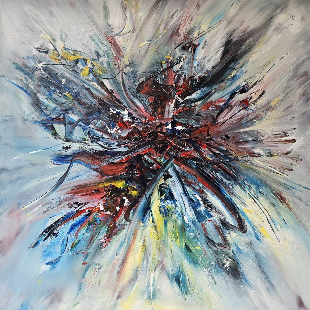 Een globale impressie van het schilderij "Razzmatazz" 80x80cm.