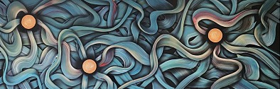 Een globale impressie van het schilderij "Souls Intertwined" 180x60cm.