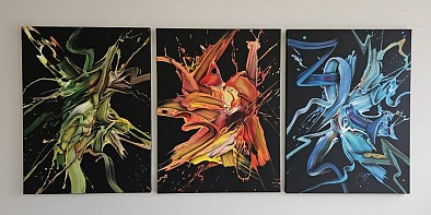 3luik tezamen ongeveer 80x180cm acrylverf op katoen met spieraam.
