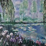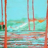 Een globale impressie van het schilderij "Dansend langs het strand" 100x100cm.