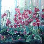 Een globale impressie van het schilderij "Bloemen" 40x40cm.