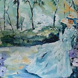 Een globale impressie van het schilderij "Berken bomen" 100x100cm.