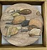 Materie schilderij/ mixed media/ houten lijst , cirkel bewerkt met acryl en zand/ tweezijdig te gebruiken ( andere zijde ammoniet)