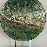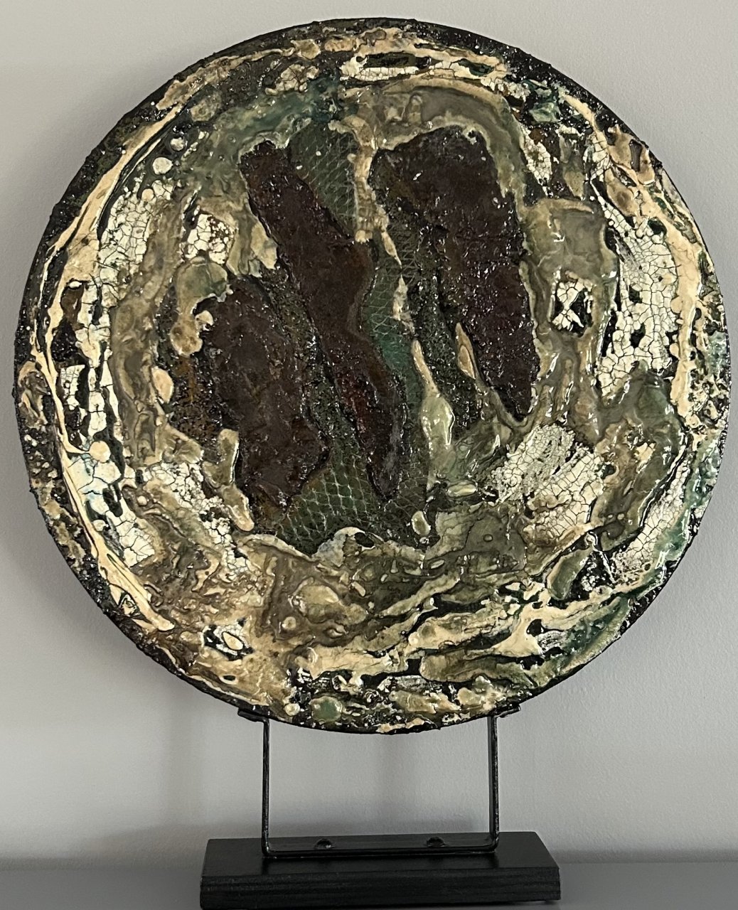 Materie schilderij/ mixed media/ cirkel op standaard, 2zijdig te gebruiken