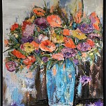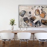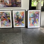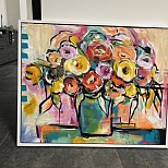 In japandi style schilderij: Blossom . Mixed media art ,acryl met goudblad en vernis laag , ophangsysteem en mooie witte baklijst. te zien/ te koop in de showroom van Totalhome in Lelystad.