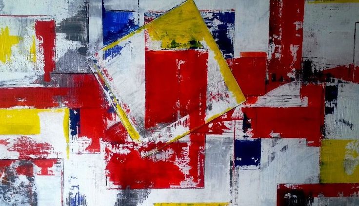 Een globale impressie van het schilderij "Movingtargets" 160x100cm.