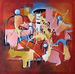 Een globale impressie van het schilderij "Kind van werelden" 70x70cm.