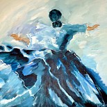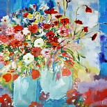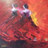 Een globale impressie van het schilderij "Romantisch" 100x100cm.