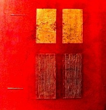 Een globale impressie van het schilderij "Spilt" 100x100cm.