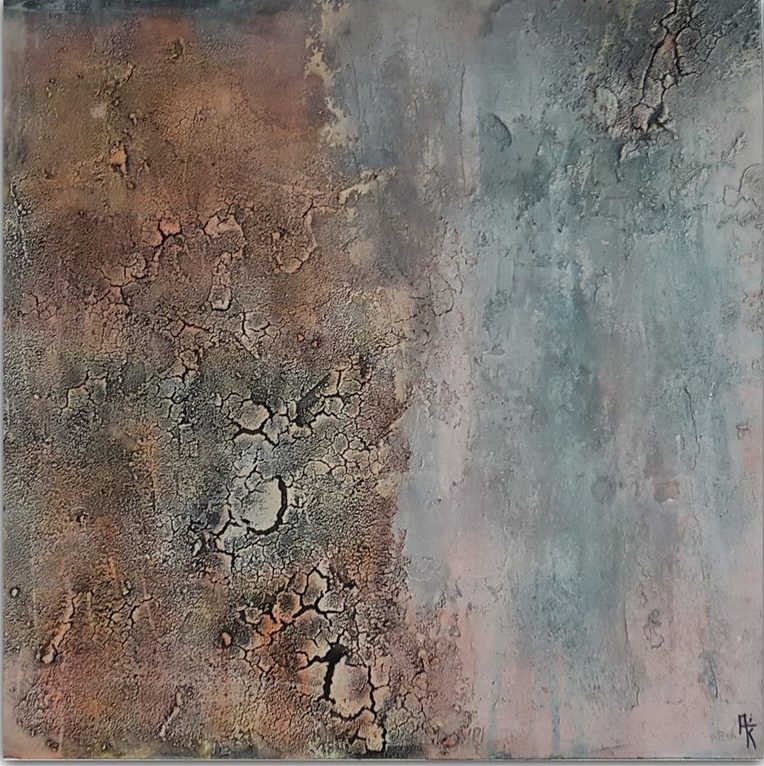 Een globale impressie van het schilderij "Erosie VII" 60x60cm.