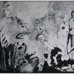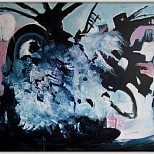 Een globale impressie van het schilderij "Zonder titel" 60x60cm.