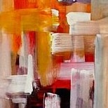 Een globale impressie van het schilderij "Landschap-abstract!" 100x65cm.