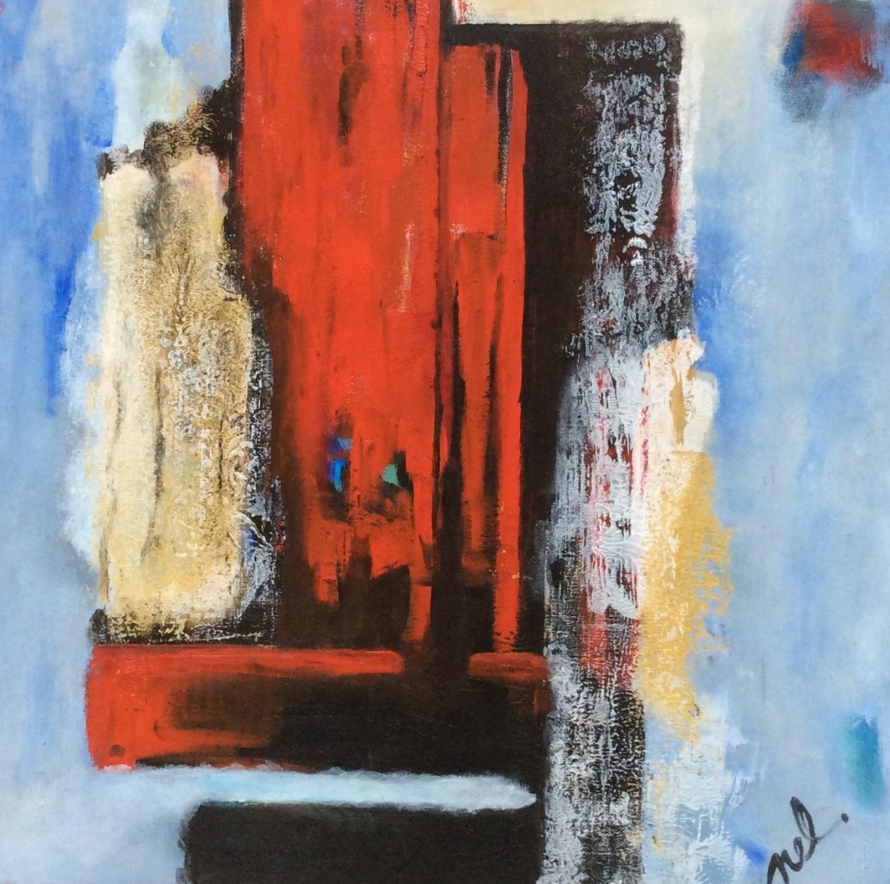 Een abstract schilderij in acryl,in diverse kleuren,laag over laag ontstaat er een verrassend resultaat.