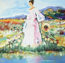 Een globale impressie van het schilderij "Romantisch (4) (aan de waterkant)" 100x100cm.