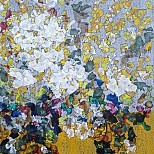 Abstract schilderij, uitgevoerd in Olieverf, Lakverf en Inkt op Linnen