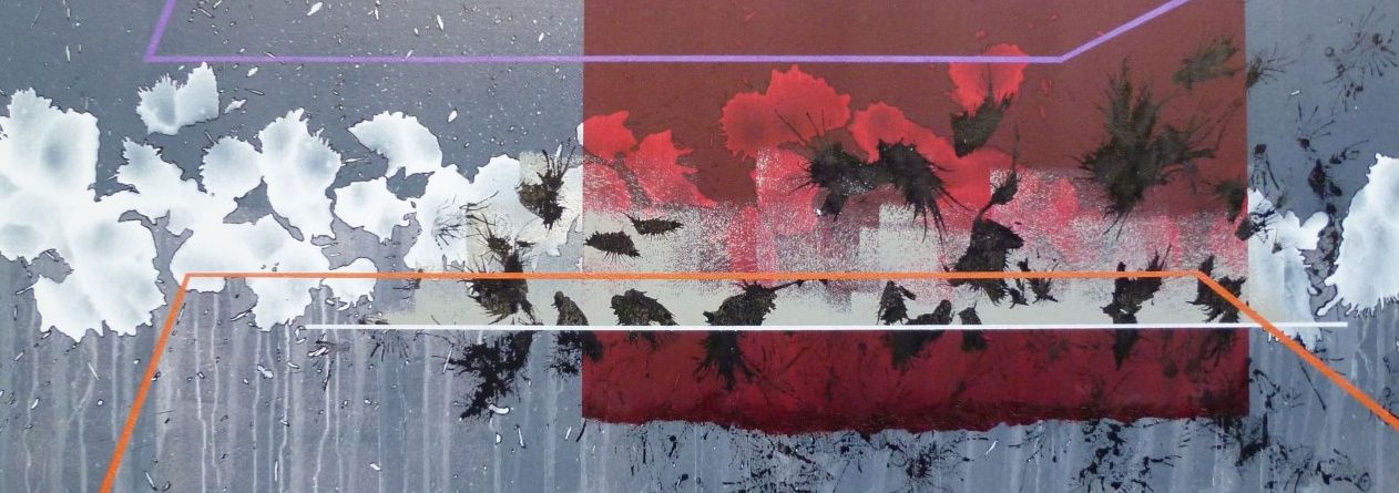 Abstract schilderij, uitgevoerd in Olieverf, Lakverf en Inkt op Linnen
